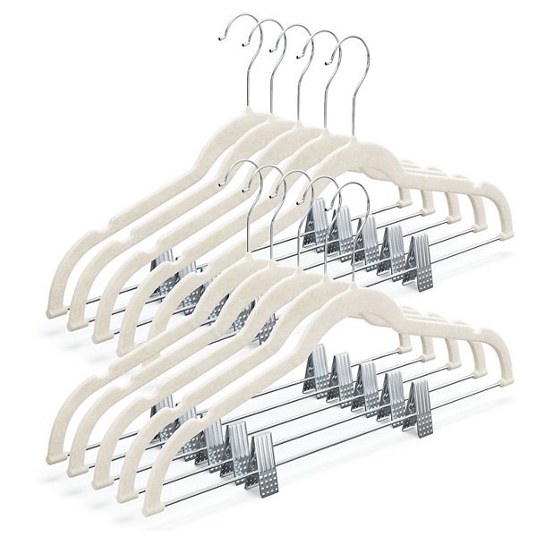 12 Pack Baby Clothes Hangers with Clips Ivory Velvet Hangers Skirt